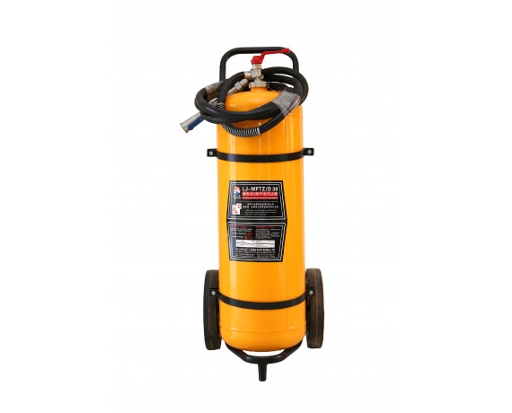 Trolley type D metal fire extinguisher -30KG This is a very flammable liquid fire that can be well aligned with the liquid and then extinguished. It can go to the fire place by hand and can be used very efficiently.