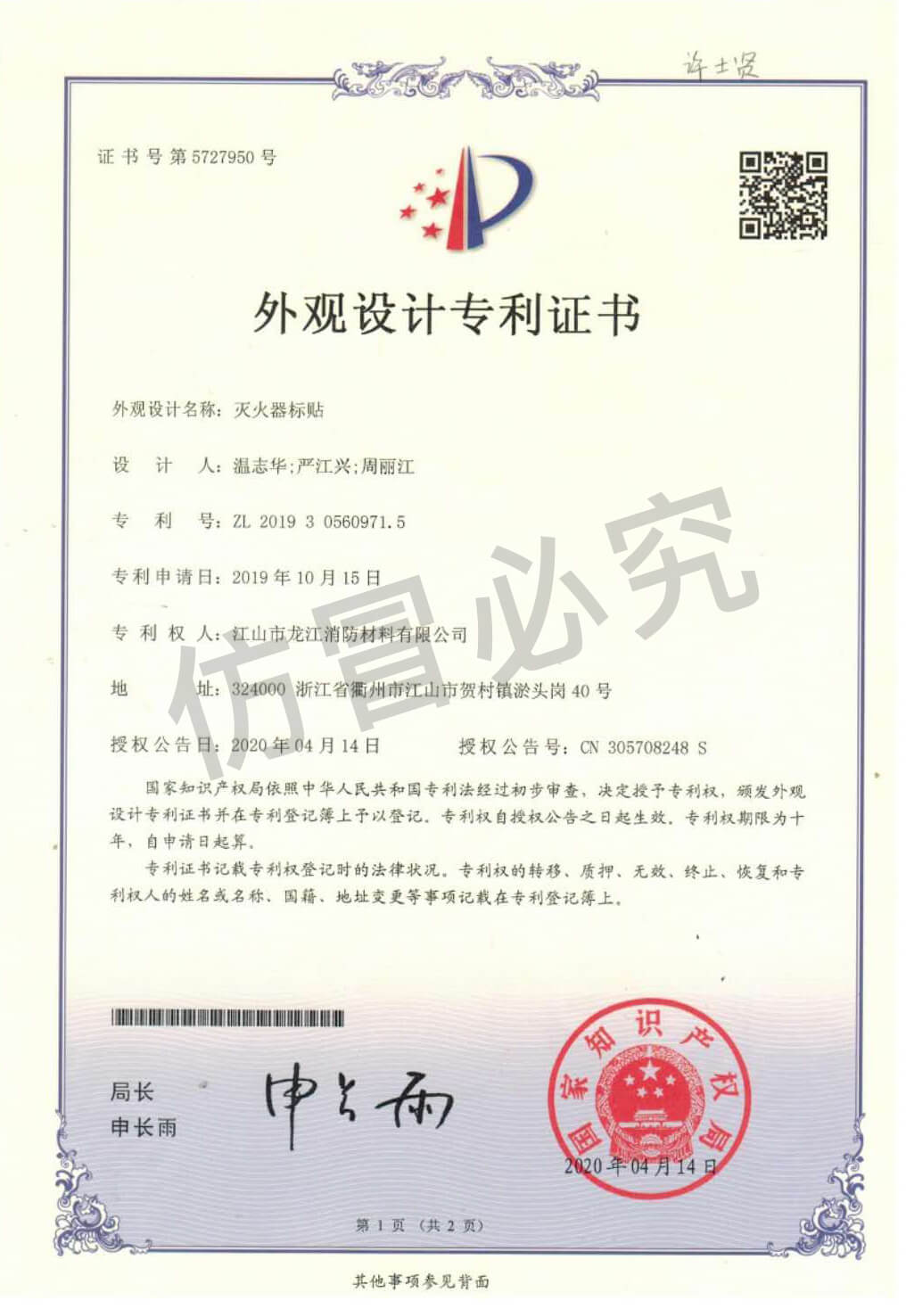 外觀設(shè)計(jì)專(zhuān)利證書(shū)