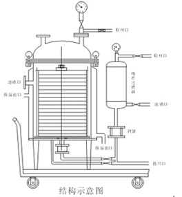 打開循環(huán)管路系統(tǒng),使料漿在濾器本體進(jìn)行循環(huán)過濾,監(jiān)視視鏡,當(dāng)肉眼觀察符合質(zhì)量要求時(shí),關(guān)閉循環(huán)管路系統(tǒng),開啟進(jìn)行閥,過濾開始,濾液即被輸送到指定的貯罐內(nèi)。