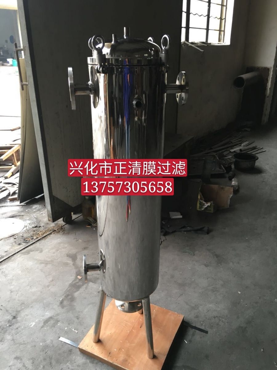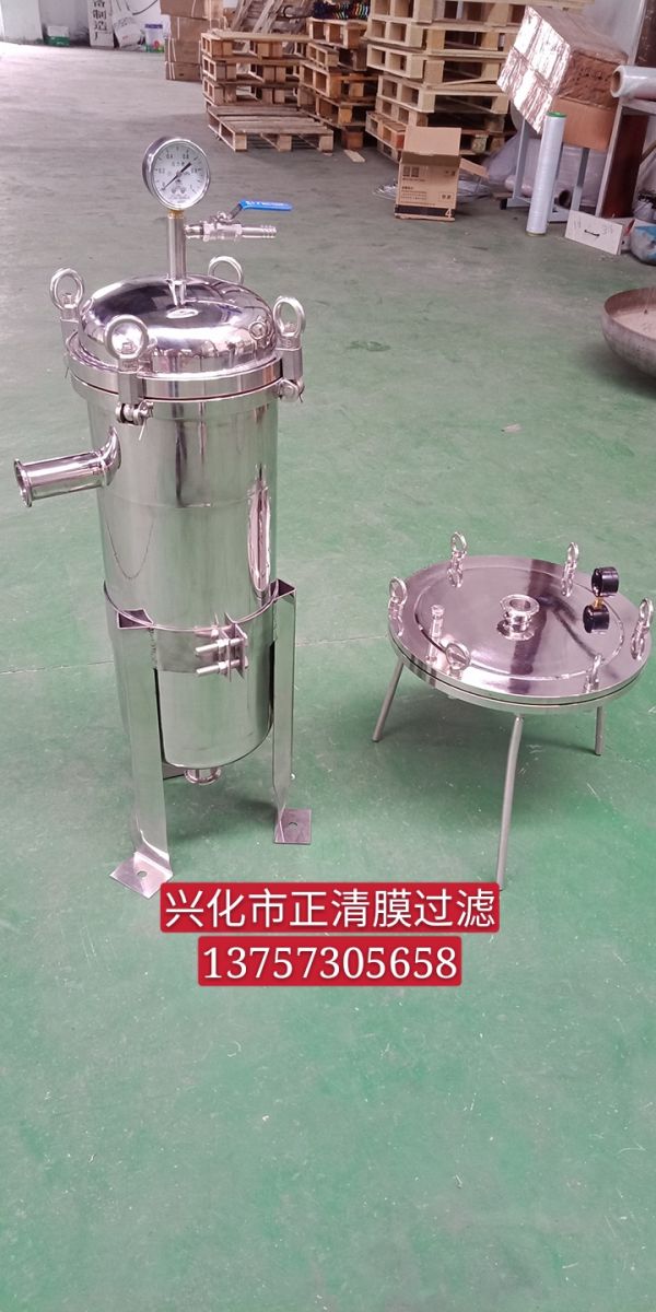 袋式過濾機(jī)是一種壓力式過濾裝置,主要有過濾筒體、過濾筒蓋和快開機(jī)構(gòu)、不銹鋼濾袋加強(qiáng)網(wǎng)等主要部件組成,濾液由過濾機(jī)外殼的旁側(cè)入口管流入濾袋,濾袋本身是裝置在加強(qiáng)網(wǎng)籃內(nèi),液體滲透過所需要細(xì)度等級的濾袋即能獲得合格的濾液,雜質(zhì)顆粒被濾袋攔截。該機(jī)更換濾袋十分方便,過濾基本無物料消耗。