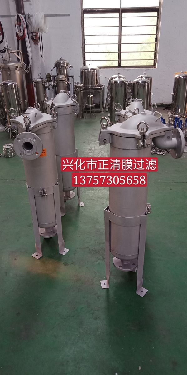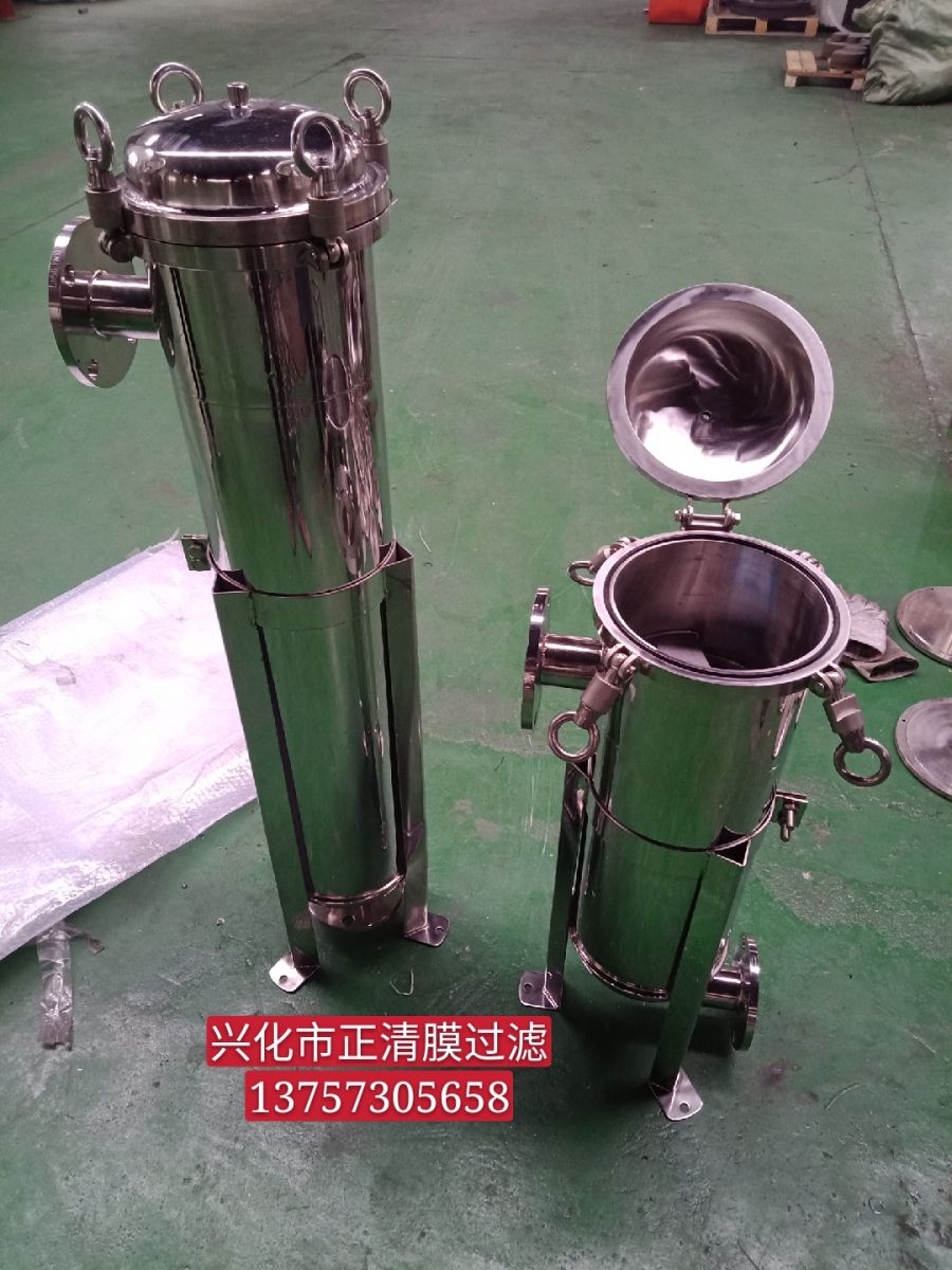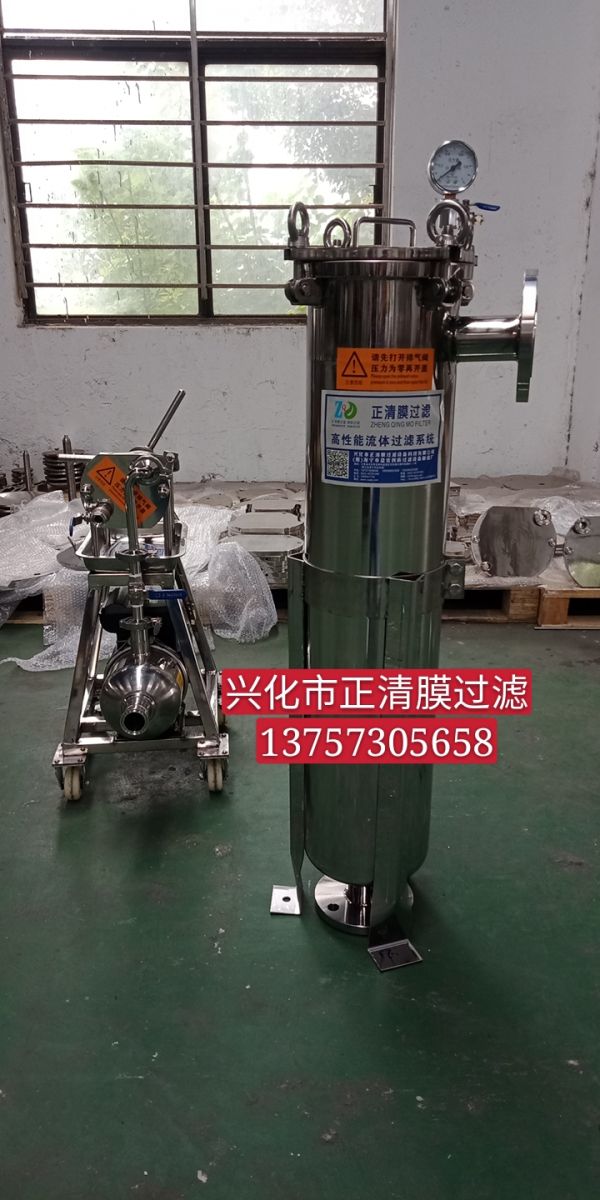 夾套保溫袋式過(guò)濾器,過(guò)濾機(jī)是一種壓力式過(guò)濾裝置,主要有過(guò)濾筒體、過(guò)濾筒蓋和快開(kāi)機(jī)構(gòu)、不銹鋼濾袋加強(qiáng)網(wǎng)等主要部件組成,濾液由過(guò)濾機(jī)外殼的旁側(cè)入口管流入濾袋,濾袋本身是裝置在加強(qiáng)網(wǎng)籃內(nèi),液體滲透過(guò)所需要細(xì)度等級(jí)的濾袋即能獲得合格的濾液,雜質(zhì)顆粒被濾袋攔截。該機(jī)更換濾袋十分方便,過(guò)濾基本無(wú)物料消耗。