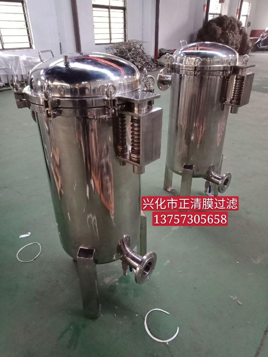 袋式過(guò)濾機(jī)是一種結(jié)構(gòu)新穎、體積小、操作簡(jiǎn)便靈活、節(jié)能、高效、密閉工作、適用性強(qiáng)的多用途過(guò)濾設(shè)備。 袋式過(guò)濾機(jī)是一種壓力式過(guò)濾裝置,主要有過(guò)濾筒體、過(guò)濾筒蓋和快開(kāi)機(jī)構(gòu)、不銹鋼濾袋加強(qiáng)網(wǎng)等主要部件組成,濾液由過(guò)濾機(jī)外殼的旁側(cè)入口管流入濾袋,濾袋本身是裝置在加強(qiáng)網(wǎng)籃內(nèi),液體滲透過(guò)所需要細(xì)度等級(jí)的濾袋即能獲得合格的濾液,雜質(zhì)顆粒被濾袋攔截。該機(jī)更換濾袋十分方便,過(guò)濾基本無(wú)物料消耗。