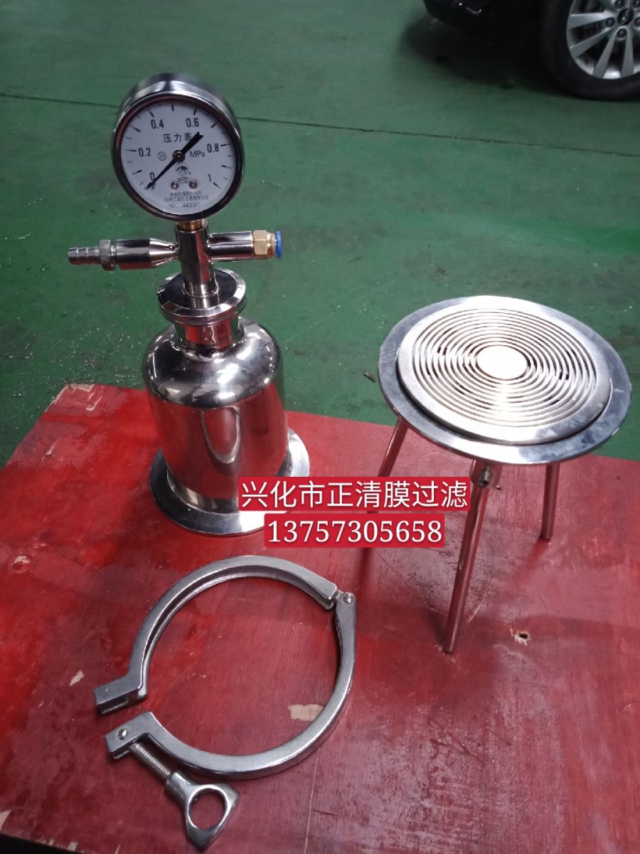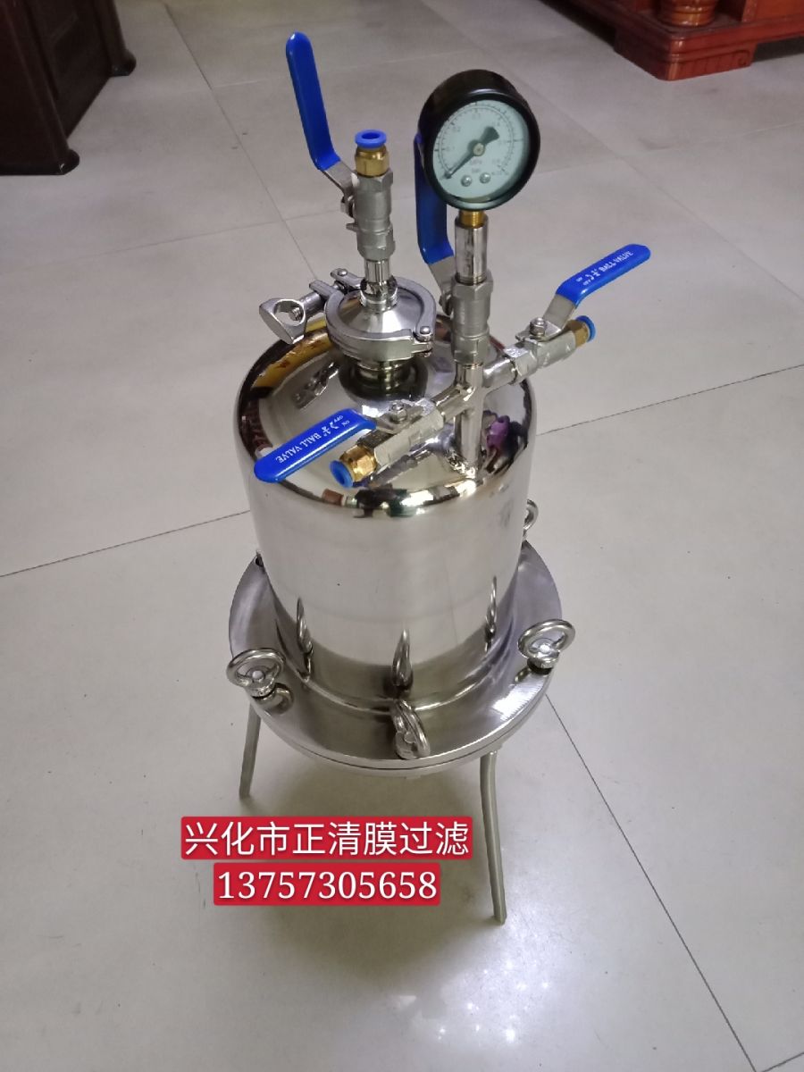 不銹鋼桶式正壓過(guò)濾器,適用于小容量科研、醫(yī)院、實(shí)驗(yàn)室等單位,對(duì)各種液體的澄清除菌處理,本過(guò)濾器特別適用于各種微孔濾膜??捎谜婵毡贸闉V或空氣壓縮機(jī)過(guò)濾,還可作板框多層過(guò)濾器和封閉式液體配制循環(huán)機(jī)組合剩液過(guò)濾,節(jié)約原材料的應(yīng)用,又可和一般加壓泵配套使用,能達(dá)到一機(jī)多用的優(yōu)點(diǎn),是科研單位不可缺少的設(shè)備之一。        技術(shù)參數(shù)