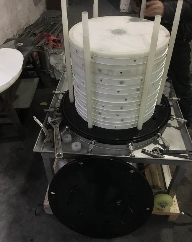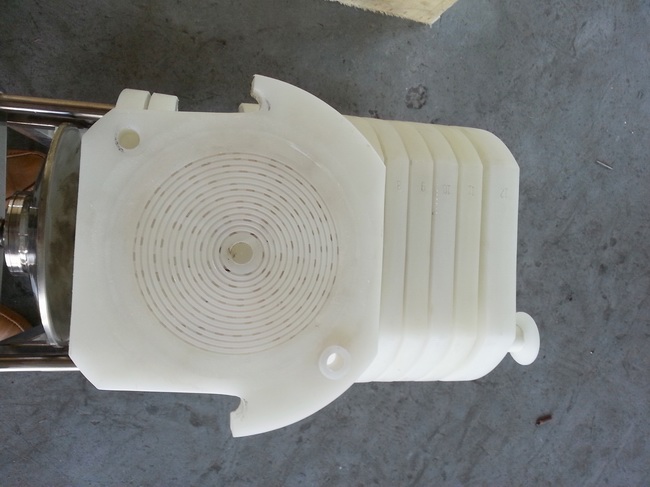 本機(jī)采用優(yōu)質(zhì)(PP/PVC/PE0材料,抗腐蝕,經(jīng)久耐用,特別在物料不能接觸重金屬的情況下,必須選擇的一種理想過濾設(shè)備。本機(jī)根據(jù)不同過濾介質(zhì)和生產(chǎn)工藝(初濾、脫活性碳、除微粒、半精濾、精濾)配微孔濾膜能達(dá)到除菌處理的目的,還可根據(jù)過濾量的大小,減少或增加過濾層數(shù),使之適合生產(chǎn)需要。本機(jī)密封部件采用醫(yī)用硅橡膠或氟橡膠,無滲漏,密封性能好。本機(jī)還可根據(jù)用戶需要,特制多級(jí)過濾裝置,一級(jí)放較粗的濾材,二級(jí)放較細(xì)的濾材,既節(jié)省了時(shí)間及設(shè)備又提高了過濾精度。板框過濾器配上微孔濾膜是目前解決過濾活性碳,微粒的理想設(shè)備。