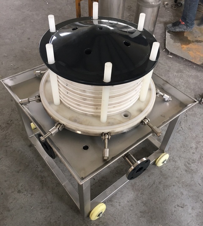 本機(jī)根據(jù)不同過濾介質(zhì)和生產(chǎn)工藝(初濾、脫活性碳、除微粒、半精濾、精濾)配微孔濾膜能達(dá)到除菌處理的目的,還可根據(jù)過濾量的大小,減少或增加過濾層數(shù),使之適合生產(chǎn)需要。本機(jī)密封部件采用醫(yī)用硅橡膠或氟橡膠,無滲漏,密封性能好。本機(jī)還可根據(jù)用戶需要,特制多級(jí)過濾裝置,一級(jí)放較粗的濾材,二級(jí)放較細(xì)的濾材,既節(jié)省了時(shí)間及設(shè)備又提高了過濾精度。板框過濾器配上微孔濾膜是目前解決過濾活性碳,微粒的理想設(shè)備。