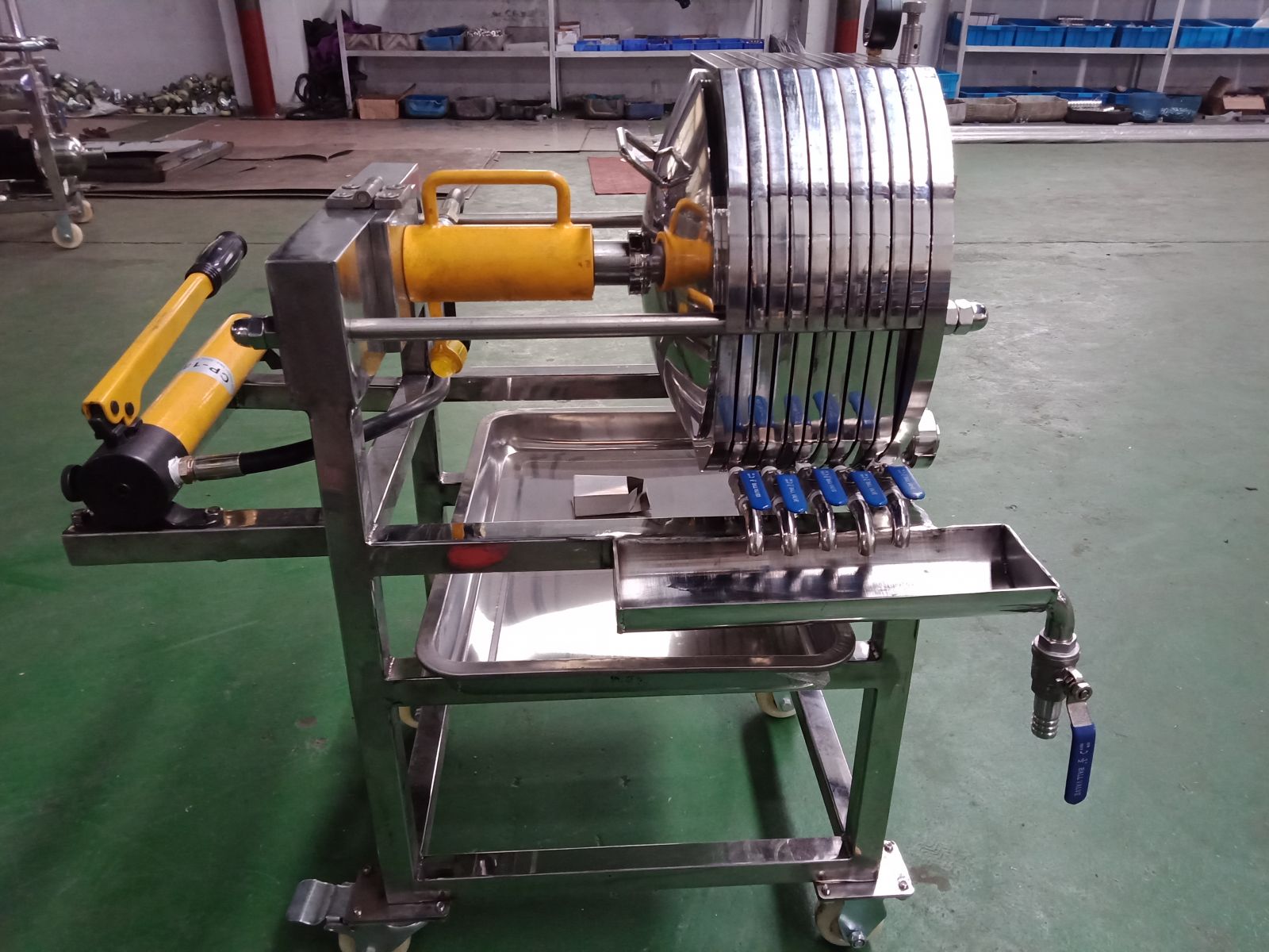 本機(jī)為不銹鋼多層板框壓濾機(jī),適用于濃度50%以下粘度較低,含渣量較少的液體作密閉過(guò)濾以達(dá)到提純,滅菌、澄清等精濾、脫活性碳、除微粒、半精濾的要求,直接選用微孔濾膜,可不經(jīng)微孔薄膜過(guò)濾器過(guò)濾可達(dá)到無(wú)菌過(guò)濾之目的)。本機(jī)過(guò)濾面積大,流量大,適用范圍大,所以在制藥、化工、食品等行業(yè)有廣泛用途,應(yīng)用在制藥廠針劑藥液之過(guò)濾,效果甚佳。