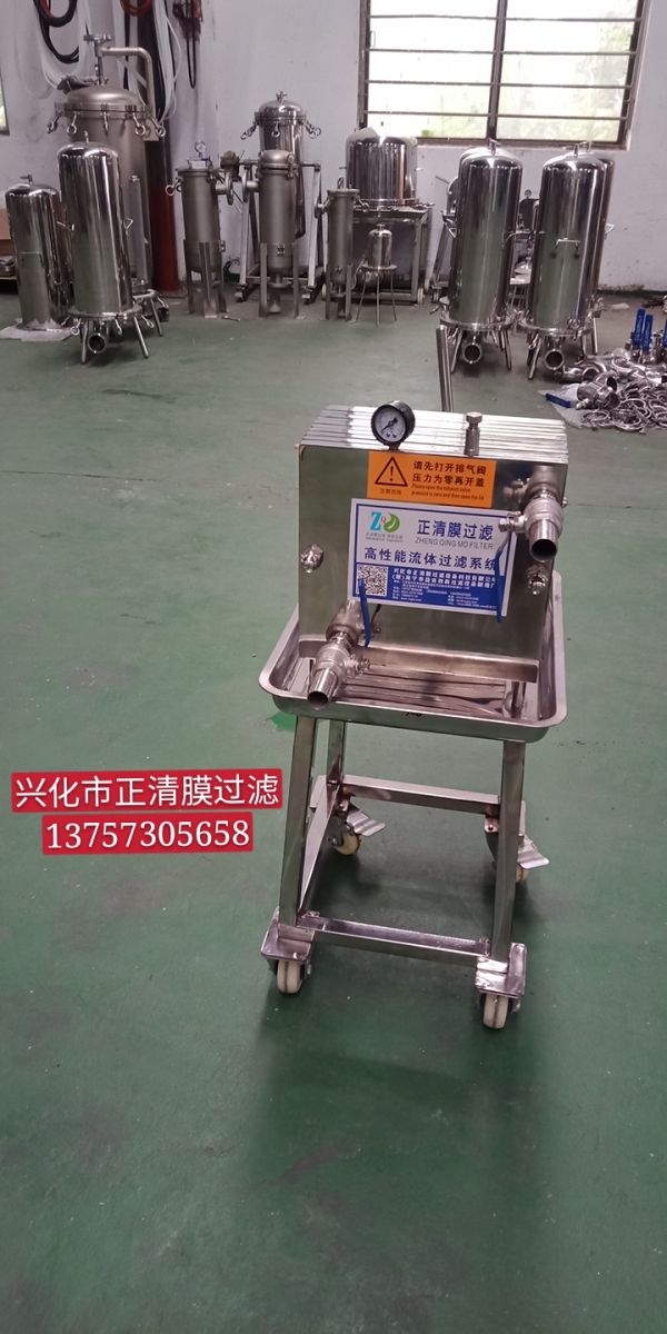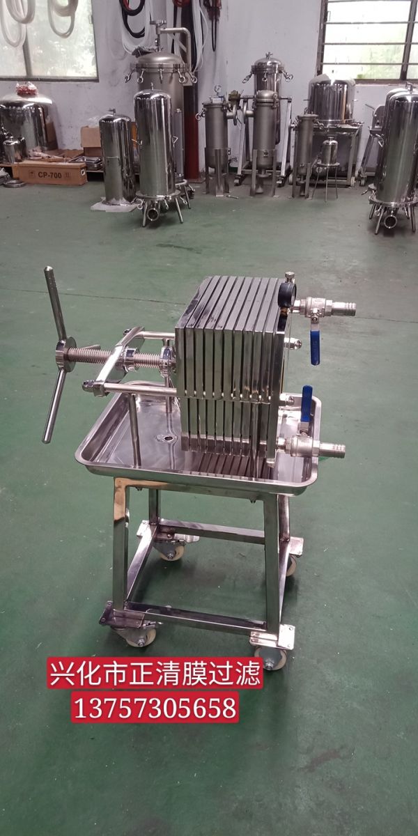 本機(jī)為不銹鋼多層板框壓濾機(jī),適用于濃度50%以下粘度較低,含渣量較少的液體作密閉過濾以達(dá)到提純,滅菌、澄清等精濾、脫活性碳、除微粒、半精濾的要求,直接選用微孔濾膜,可不經(jīng)微孔薄膜過濾器過濾可達(dá)到無菌過濾之目的)。本機(jī)過濾面積大,流量大,適用范圍大,所以在制藥、化工、食品等行業(yè)有廣泛用途,應(yīng)用在制藥廠針劑藥液之過濾,效果甚佳。
