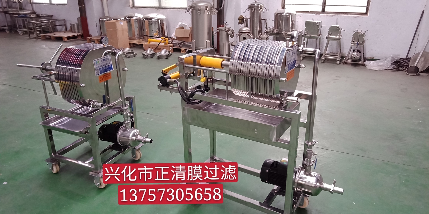 本機為不銹鋼多層板框壓濾機,適用于濃度50%以下粘度較低,含渣量較少的液體作密閉過濾以達到提純,滅菌、澄清等精濾、脫活性碳、除微粒、半精濾的要求,直接選用微孔濾膜,可不經微孔薄膜過濾器過濾可達到無菌過濾之目的)。本機過濾面積大,流量大,適用范圍大,所以在制藥、化工、食品等行業(yè)有廣泛用途,應用在制藥廠針劑藥液之過濾,效果甚佳。